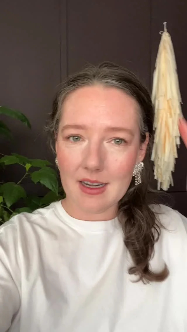 I’m drawn to the softness of these tissue tassels. I love the way dappled sunlight looks on them, the way they move after someone walks by, and the way they look different with the changing light. They add texture and whimsy.